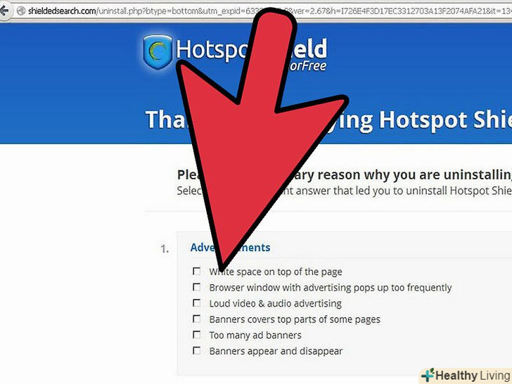 Далі ви можете заповнити або закрити з'явився "Hotspot Shield Uninstall Survey".