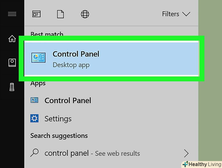 Відкрийте Панель керування. введітьпанель управління , а потім натисніть на синій значок «Панель управління» у верхній частині меню «Пуск».