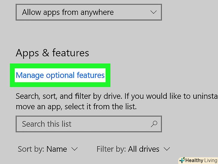 НатиснітьУправління компонентами. це посилання знаходиться в розділі "Програми та можливості" у верхній частині вікна. Відкриється список встановлених додаткових компонентів, один з яких — Internet Explorer.