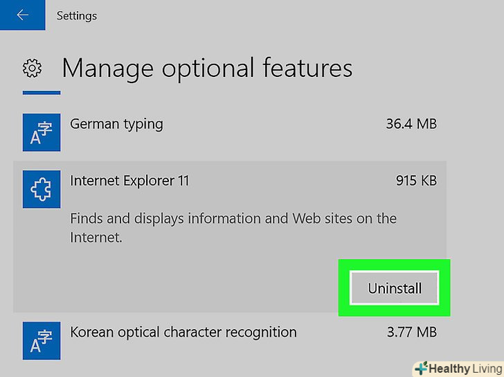 З цієї статті ви дізнаєтеся, як на комп'ютері запобігти використанню браузера Internet Explorer. У Windows 10 браузер Internet Explorer можна видалити в налаштуваннях системи, а в Windows 7/8/10 — відключити в панелі управління. Майте на увазі, що Internet Explorer не можна видалити як звичайну програму.