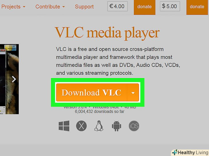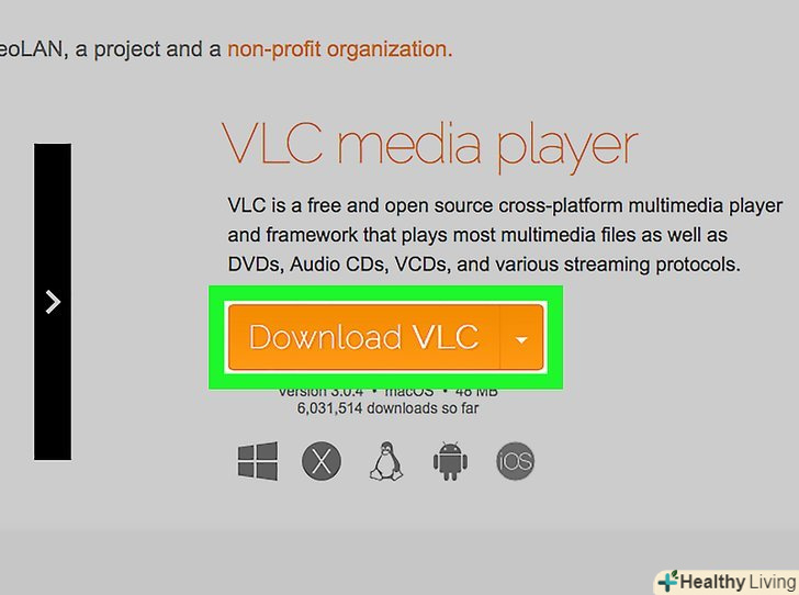 НатиснітьЗавантажити VLC.ця кнопка знаходиться праворуч на сторінці.