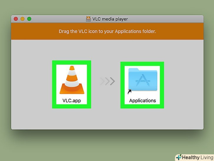 Перетягніть значок VLC в папку "Програми".ви знайдете її на правій панелі, а значок VLC (виглядає як конус) — на лівій. VLC буде встановлений на комп'ютері.