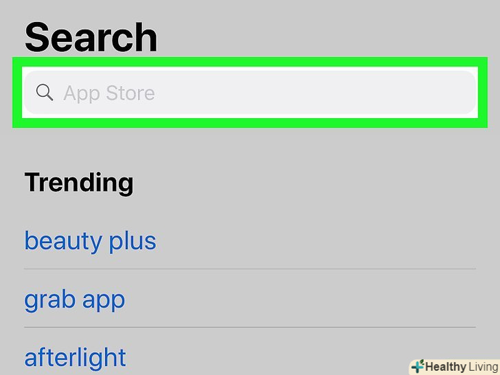 Натисніть на рядок пошуку. вона знаходиться вгорі екрану; в рядку є текст «App Store».