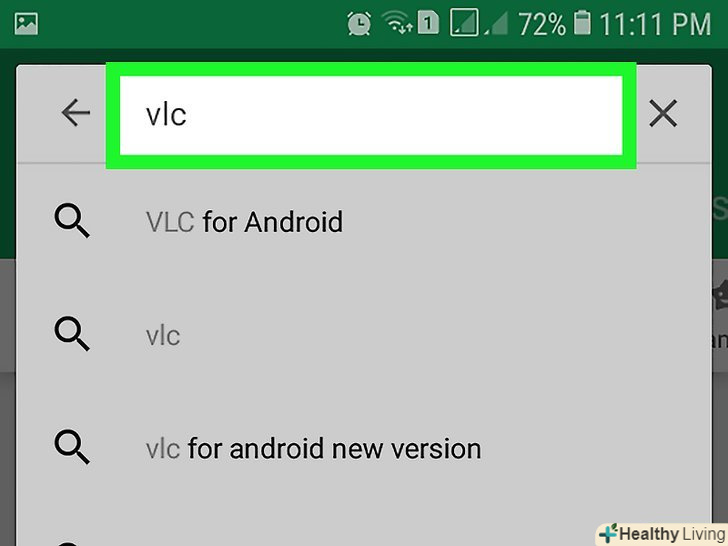 Знайдіть VLC. введіть vlc, а потім в меню виберіть «VLC for Android».