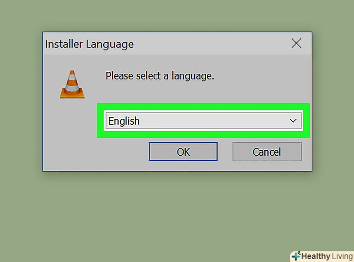 Виберіть мову, коли з'явиться запит.для цього відкрийте меню з мовами і виберіть мову, на якій буде відображатися інтерфейс VLC. Потім натисніть "ОК".