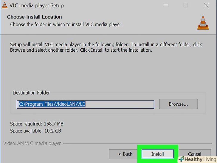 Клацніть поВстановити.ця опція знаходиться внизу сторінки. VLC буде встановлений на комп'ютері.