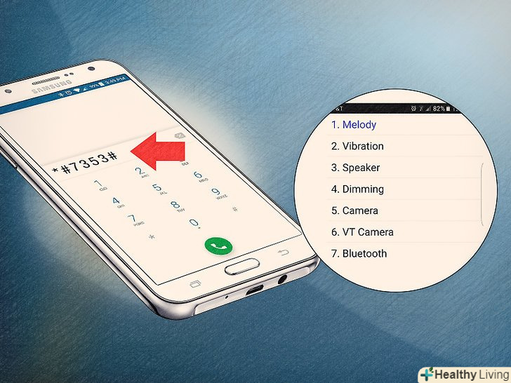Введіть спеціальні коди Samsung у програмі набору номера.в Samsung використовується ряд "таємних кодів" для усунення несправностей. Вони працюють тільки на справжніх смартфонах Samsung.- *#7353#: на дисплеї з'явиться меню з декількома пунктами (Melody, Vibration, Speaker, Dimming та інші). Дане меню відобразиться тільки в оригінальному Samsung J7.