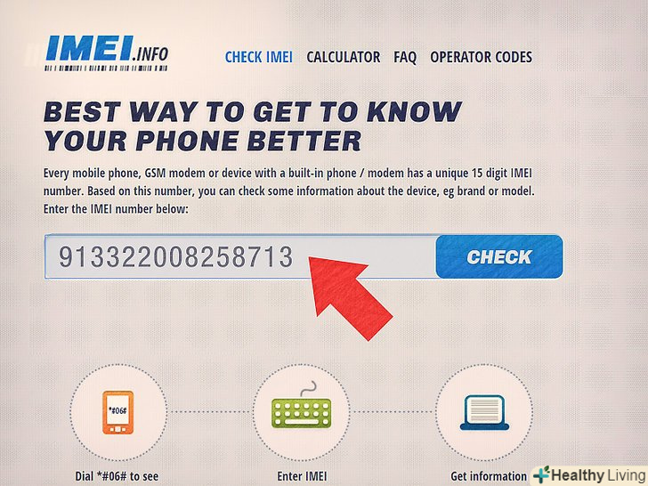 Введіть IMEI на сайтіБази номерів IMEI.для перевірки не потрібні обліковий запис або пароль, просто введіть номер в спеціальне поле.