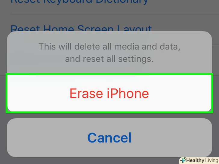 Натисніть < span class="nowrap" title="This is not a clickable button; it illustrates the button one should find." style="font-family: Segoe UI, Frutiger, Frutiger Linotype, Dejavu Sans, Helvetica Neue, Arial, sans-serif;letter-spacing:0px;padding:0em .6em; border:1px solid; border-color:#AAA #555 #555 #AAA; -moz-border-radius: 0px; -webkit-border-radius: 0px; border-radius: 0px; background-color: #F2F2F2; background-image: -moz-linear-gradient(top, #FCFCFC, #E0E0E0); background-image: -o-linear-gradient(top, #FCFCFC, #E0E0E0); background-image: - webkit-linear-gradient(top, # FCFCFC, #E0E0E0); background-image: linear-gradient(top, #FCFCFC, #E0E0E0);">стерти.це призведе до скидання всіх налаштувань, а також до видалення медіафайлів і даних на iPhone.- Коли процес скидання налаштувань завершиться, на екрані з'явиться опція «налаштувати» (як на новому пристрої).