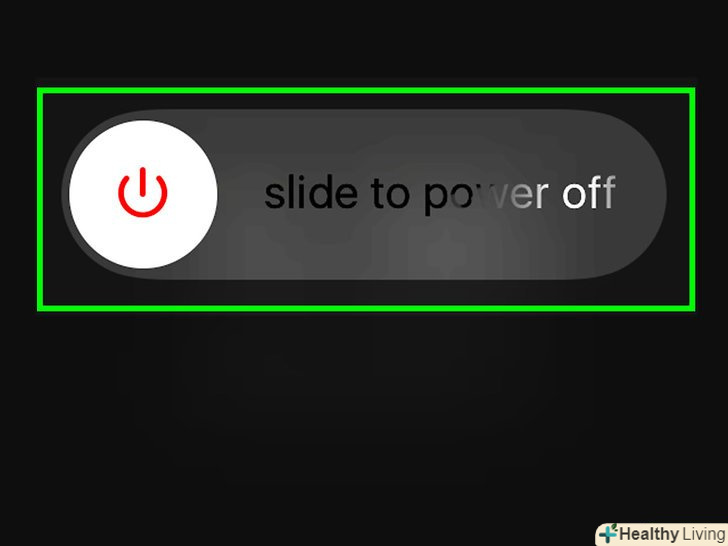 Перезавантажте смартфон.як правило, це найефективніший спосіб усунення неполадок.- Натисніть і утримуйте кнопку включення. Вона знаходиться вгорі правої панелі або праворуч на верхній панелі iPhone. На екрані з'явиться опція» вимкнути " — проведіть по ній вправо, щоб вимкнути смартфон.