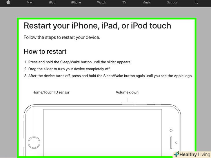Примусово перезавантажте iPhone.зробіть це, якщо смартфон завис і ні на що не реагує.[4].- Рекомендуємо примусово перезавантажувати iPhone тільки в крайньому випадку, якщо пристрій не відповідає.[5]