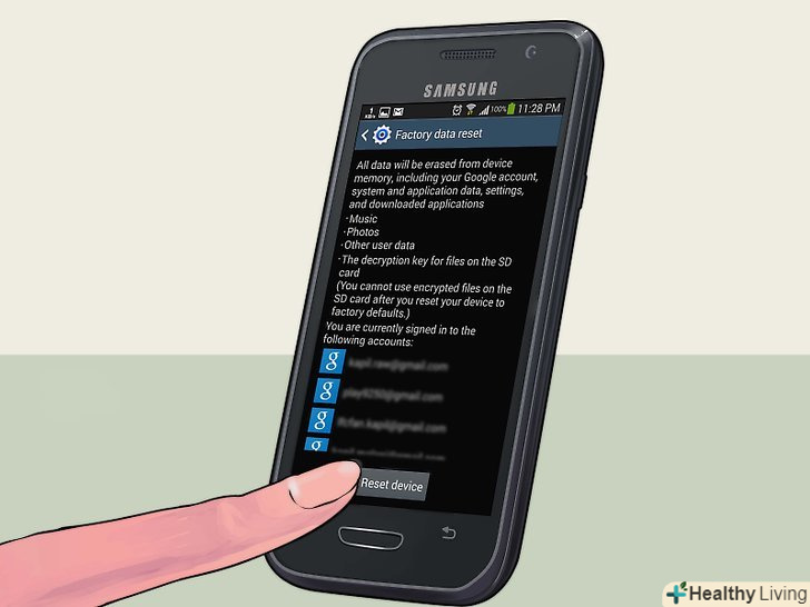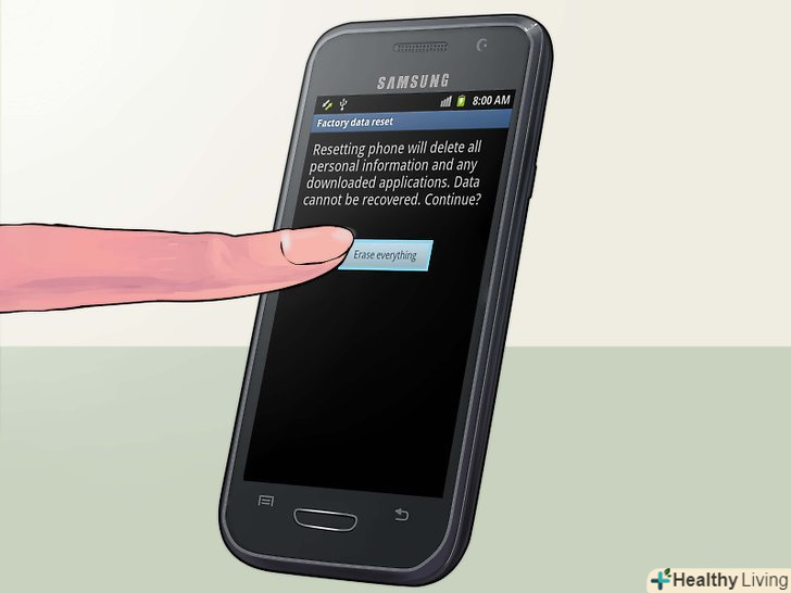 Натисніть на Видалити всі " Delete all." зачекайте кілька хвилин, поки пристрій перезавантажитися і відновить налаштування за замовчуванням.[3]