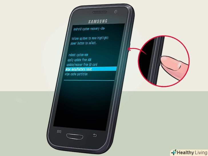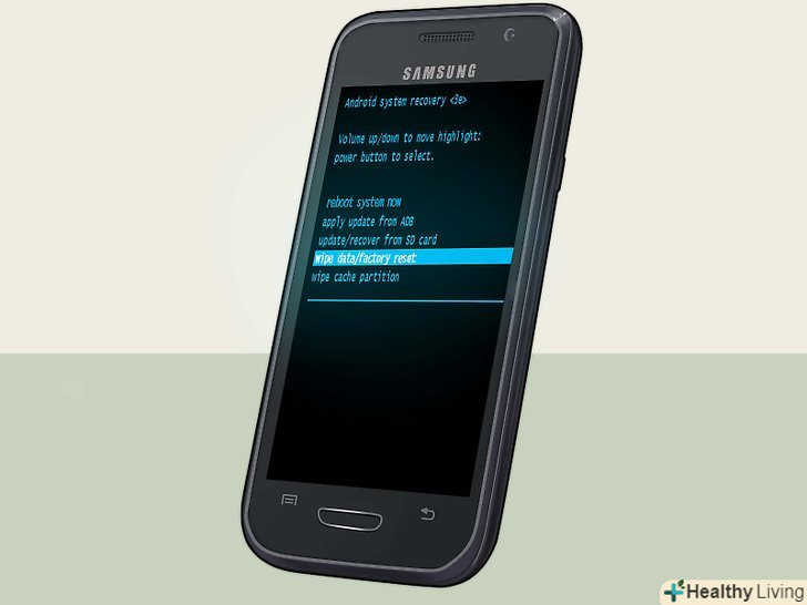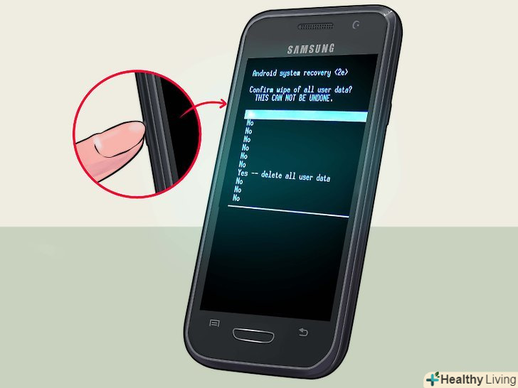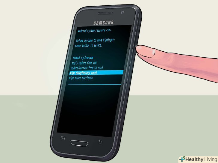 Натисніть кнопку зменшення гучності звуку, щоб вибрати опцію скидання налаштувань / видалення даних " wipe data / Factory reset.”