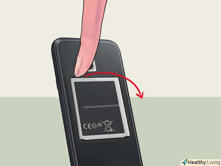Візьміть батарею за верхню частину, ліворуч, витягніть батарею з телефону.