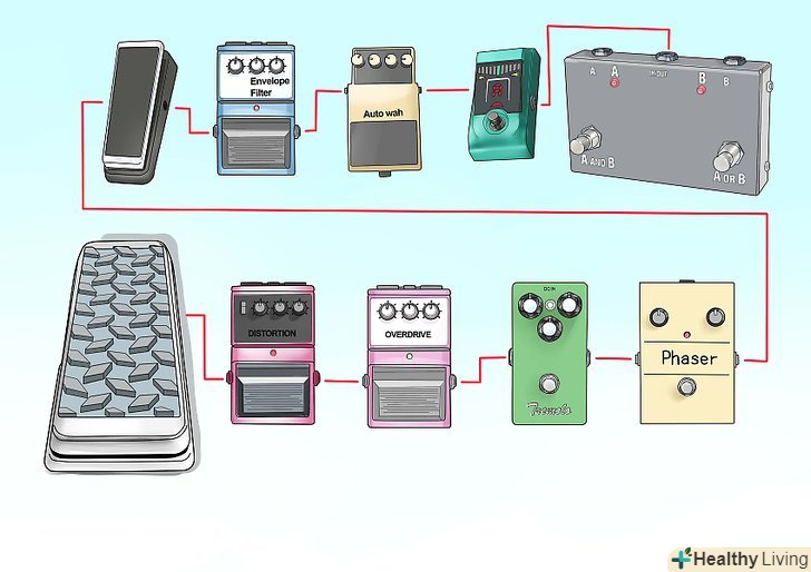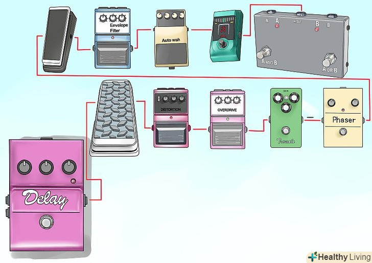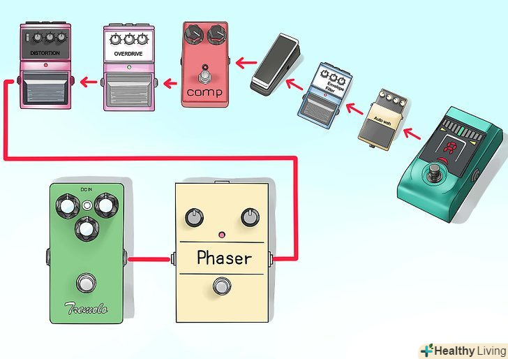 Підключіть інші моделюють педалі.після підключення всіх ефектів, перерахованих вище, можна приступити до підключення інших фільтрів і ефектів, таких як хорус, фленджер, тремоло і фазер. Якщо у вас кілька таких ефектів, поекспериментуйте з порядком підключення, щоб з'ясувати, як вони змінюють сигнал.
