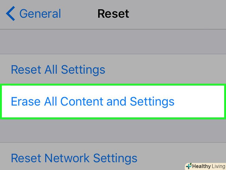 ТоркнітьсяСтерти весь вміст і налаштування.ця опція знаходиться у верхній частині меню.