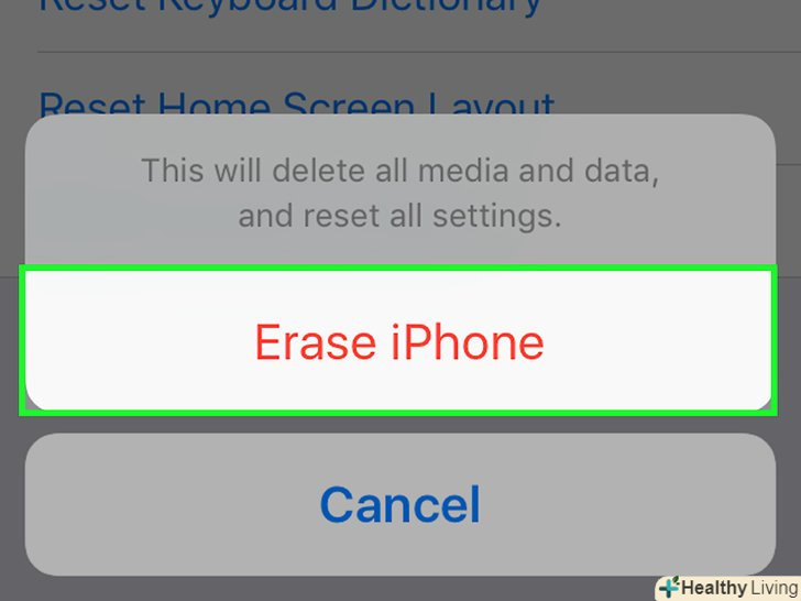 ТоркнітьсяСтерти. будуть скинуті всі налаштування і видалені всі дані.