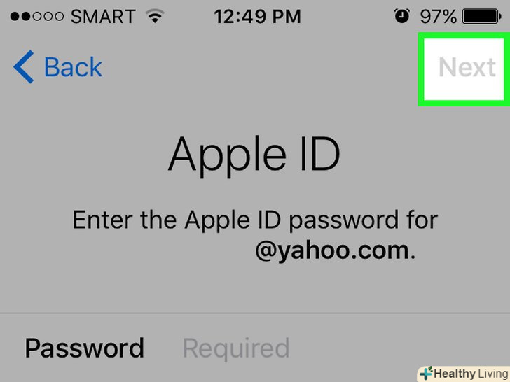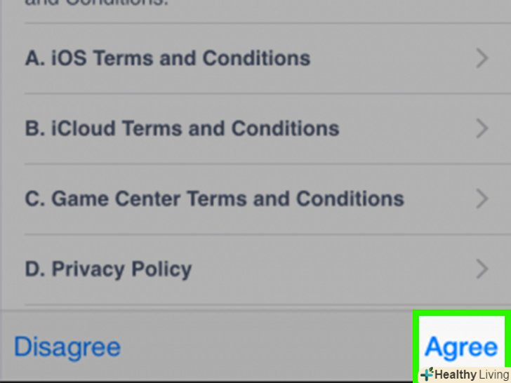 НатиснітьДалі.ця опція знаходиться у верхньому правому куті екрана. На екрані відобразяться Умови використання продуктів Apple.- Прокрутіть вниз, щоб прочитати їх.