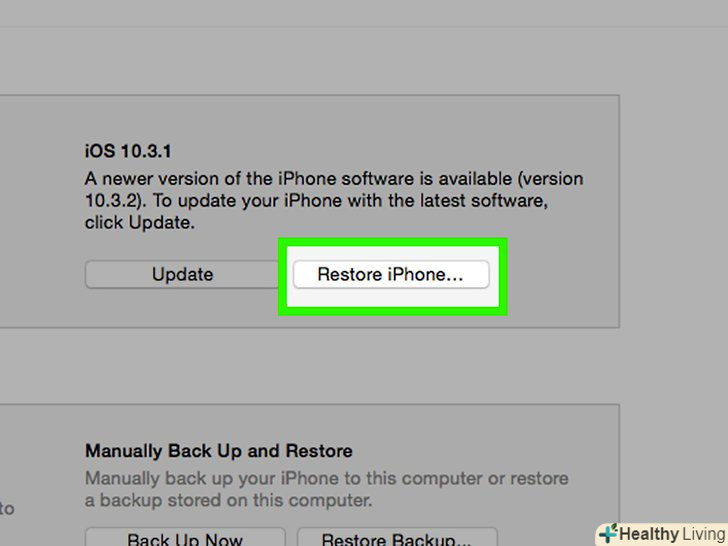 НатиснітьВідновити iPhone.ця опція знаходиться у верхній частині правої панелі вікна.
