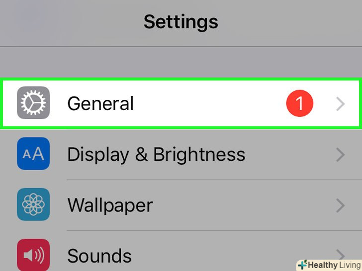 Прокрутіть вниз і натисніть «Основні».ця опція знаходиться у верхній частині третього розділу (рахуючи від Apple ID).