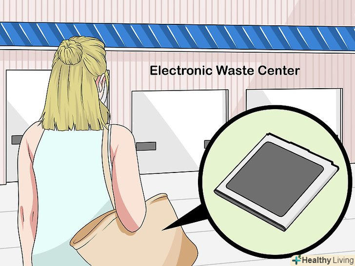 Віднесіть батарею до місцевого центру з утилізації електронних відходів.знайдіть в Інтернеті найближчий центр з утилізації електронних відходів. Він займається безпечною утилізацією небезпечних електронних відходів, в тому числі і роздутих батарей.[2]- Якщо у вас не вийде знайти центр з утилізації електронних відходів в Інтернеті, зверніться за допомогою до місцевого центру з утилізації небезпечних матеріалів.[3]