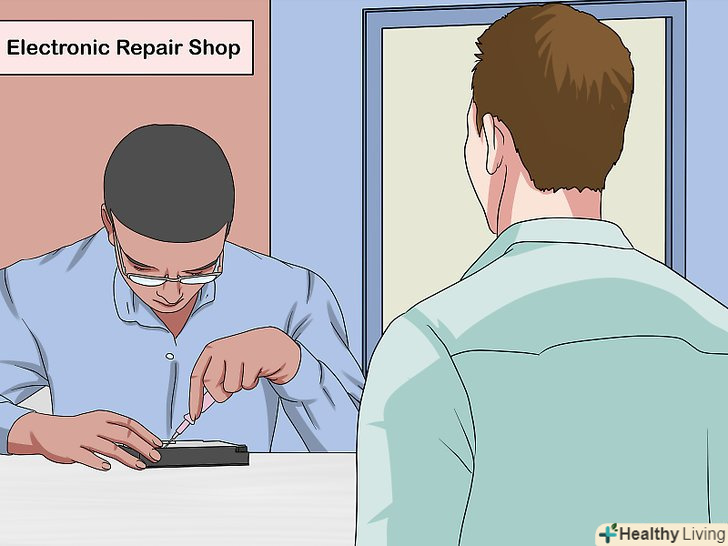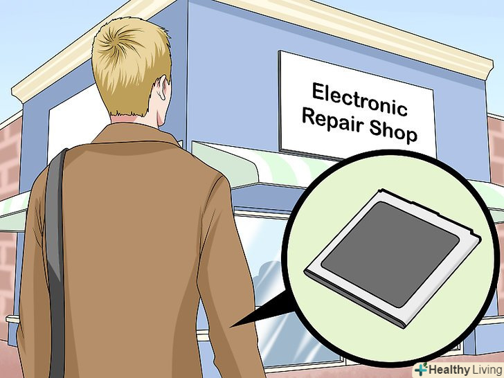 Зверніться в магазин електроніки або ремонту електронного обладнання.якщо вам не вдасться знайти центр з утилізації електронних відходів, зверніться в магазин з ремонту або продажу комп'ютерів. Магазини Apple та інші фірмові магазини часто стикаються з несправною електронікою. Можливо, вони зможуть безпечно утилізувати у себе набряклу батарею.[4]