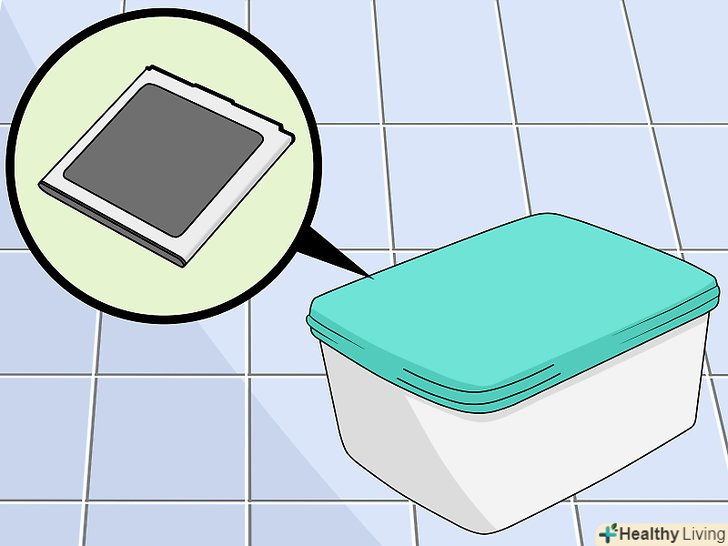 Покладіть батарею в прохолодний контейнер.помістіть витягнуту батарею в прохолодний контейнер і накрийте його кришкою. Це дозволить уникнути випадкового проколу батареї при транспортуванні в пункт утилізації.[7]