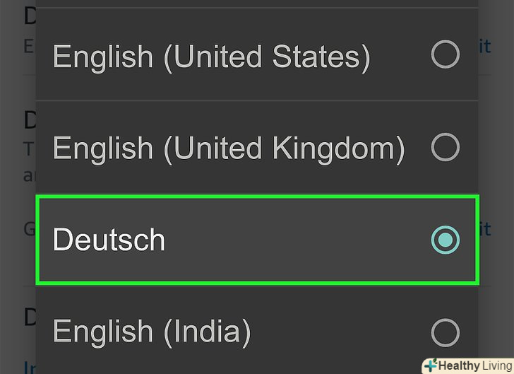 Виберіть іншу мову з меню, що випадає.після того як ви виберете ту чи іншу англомовну країну, ваша колонка почне говорити з відповідним акцентом. Варіанти наступні:- Німецька (Німеччина)