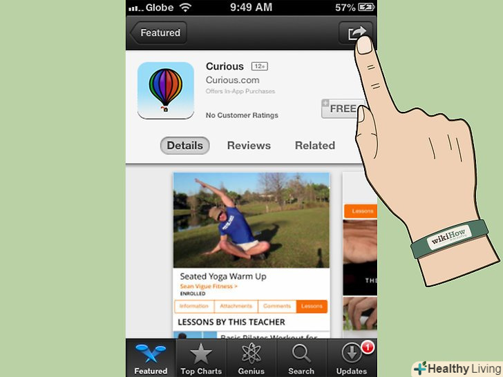 Відкрийте програму.якщо ви вибрали додаток, яке хочете подарувати, то натисніть на його назву. Відкриється спливаюче вікно. У верхній правій частині екрана ви побачите значок квадрата зі стрілкою, це ярлик для спільного використання.