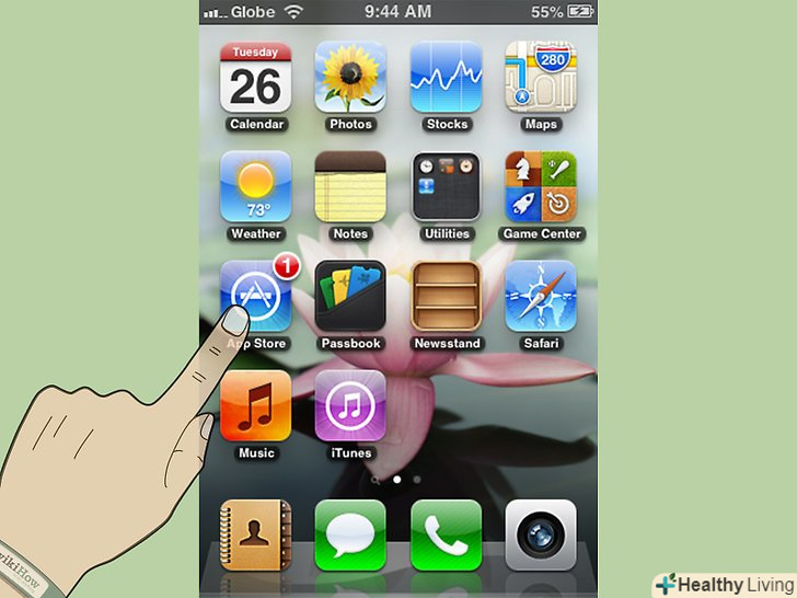 Перейдіть до магазину iTunes.відкрийте "App Store«, ви можете це зробити, безпосередньо натиснувши на» App Store" на вашому телефоні.- Це значок синього кольору, на ньому зображені кисть і олівець у формі літери «а», яка обведена білим колом.