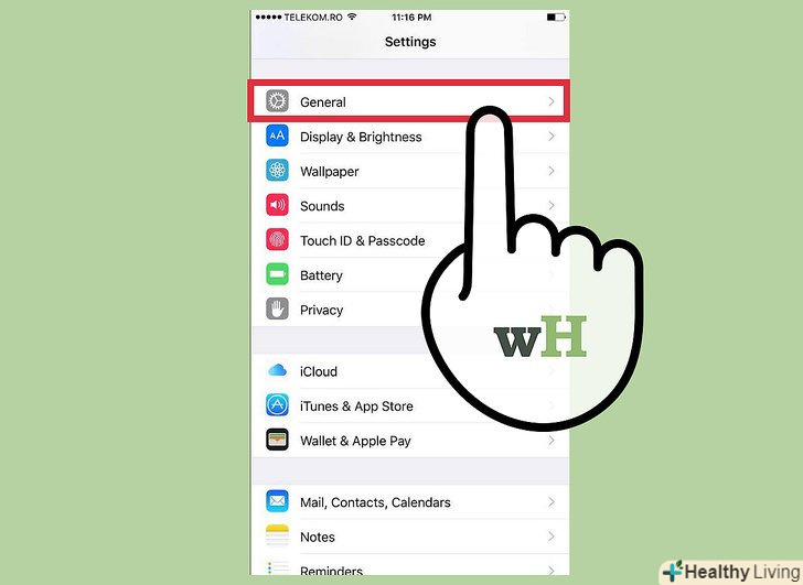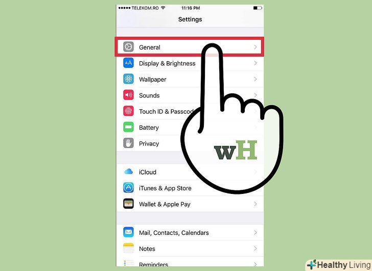 Виберіть "Загальні".після натискання на кнопку "Налаштування" повинен з'явитися список. Перегорніть вниз, поки не побачите опцію "Загальні", це буде сіра іконка із зображенням шестерні.