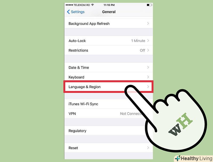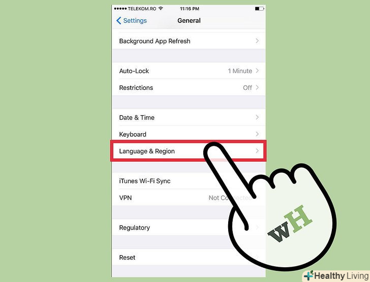 Виберіть "Мова та Регіон".коли під вкладкою "Загальні «з'явиться список, перегорніть його вниз, поки не знайдете опцію»мова і Регіон". Натисніть на неї, щоб відкрити інше меню.