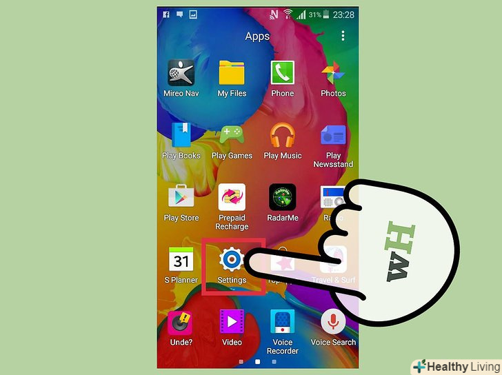 Зайдіть в "Налаштування".якщо на вашому телефоні все ще стоять параметри за замовчуванням, тоді кнопка "Налаштування" буде знаходитися на головному екрані. Іконка має вигляд сірої шестерні.[1]