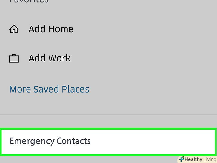 Натисніть кнопку меню (далі).ви можете додати до п'яти контактів до списку "екстрені контакти". З цими людьми ви зможете швидко відправляти статус своєї поїздки і місце розташування.- Зовсім не обов'язково додавати екстрені контакти, але з ними вам буде набагато простіше поділитися своїм місцем розташування з ким-небудь.