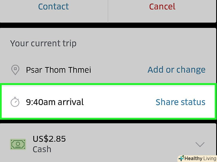 Діліться статусом своєї поїздки з друзями та рідними, щоб вони знали, коли Ви приїдете, де ви знаходитесь в даний момент, і знали інформацію про вашого водія і автомобілі. Ви можете поділитися статусом поїздки як з iPhone, так і з Android, але процес трохи відрізняється. В Android можна вказати до п'яти контактів, з якими слід зв'язатися в разі надзвичайної ситуації, завдяки цьому ділитися місцем розташування буде простіше.