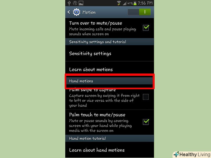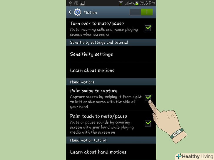 Активуйте функцію "знімок екрана долонею", поставивши поруч з нею галочку.закрийте меню.