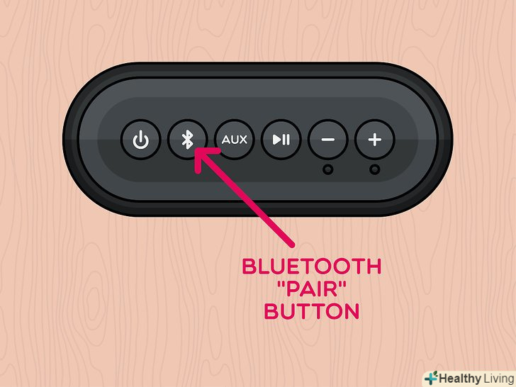Натисніть кнопку сполучення на корпусі колонок.розпочнеться процес пошуку довколишніх Bloetooth-пристроїв (наприклад, ноутбука). Розташування і зовнішній вигляд цієї кнопки залежить від моделі колонок, тому почитайте інструкцію до колонок, якщо не можете знайти кнопку сполучення.
