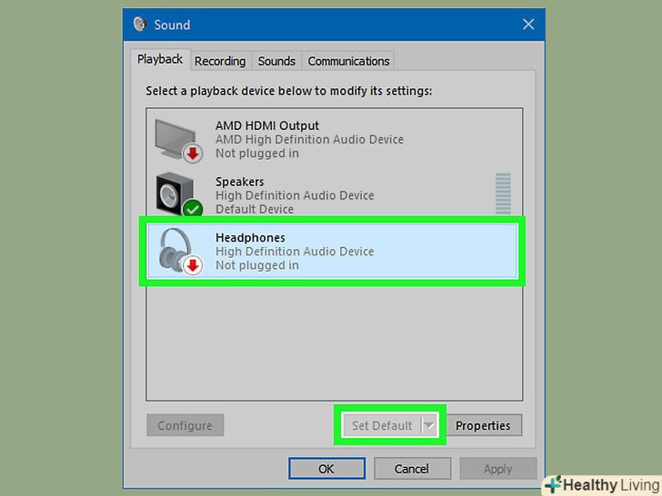 Виберіть гарнітуру.переконайтеся, що ваша гарнітура все ще увімкнена та підключена. Відкрийте " control panel "і виберіть" hardware and sound", а потім"Sound". На вкладці Рlayback (відтворення) ви побачите нову Bluetooth Audio. Воно може називатися Stereo Audio чи ні, в залежності від гарнітури. Вам потрібно натиснути правою кнопкою миші на пристрій і встановити його за замовчуванням. Переконайтеся в тому, звук не відтворюється при установці гарнітури. Це може вплинути на те, гарнітура не буде відповідати належним чином. Якщо це станеться, перезавантажте гарнітуру.