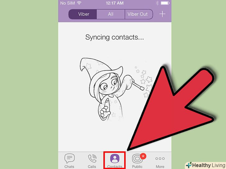 Натисніть кнопку "Контакти", щоб побачити всіх людей у телефонній книзі, які в даний час використовують Viber.натискання на контакт дасть два різних варіанти « "Безкоштовний дзвінок»і "безкоштовне повідомлення". При виборі одного з цих варіантів буде автоматично розпочато виклик або текстове листування з цією людиною.