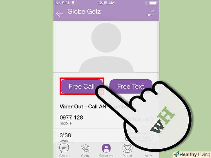 Натисніть на контакт і виберіть "Безкоштовний дзвінок", щоб почати голосовий дзвінок.якщо ви ще не робили дзвінка, вас запитають, чи може Viber отримати доступ до мікрофону. Виберіть "OK", щоб продовжити виклик.