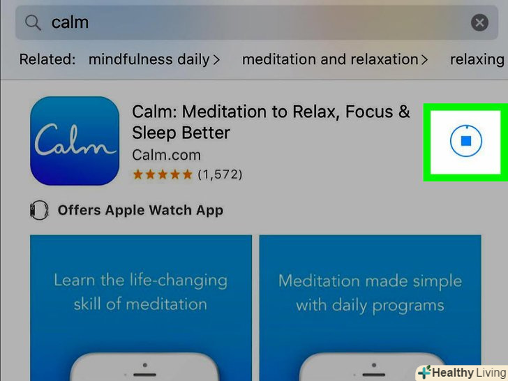 Дочекайтеся, коли додаток завершить завантаження. праворуч від програми відобразиться значок кола з квадратом-додаток буде завантажено на пристрій, як тільки все коло зафарбується. На це піде від декількох секунд до декількох хвилин в залежності від розміру програми і швидкості вашого інтернет-з'єднання.- Натисніть на квадрат в центрі кола, щоб зупинити завантаження.