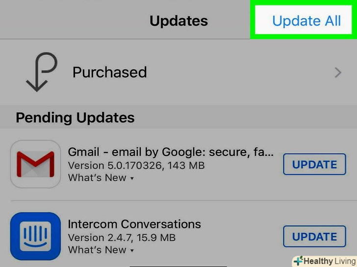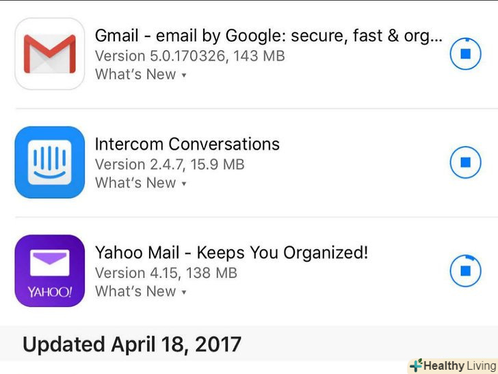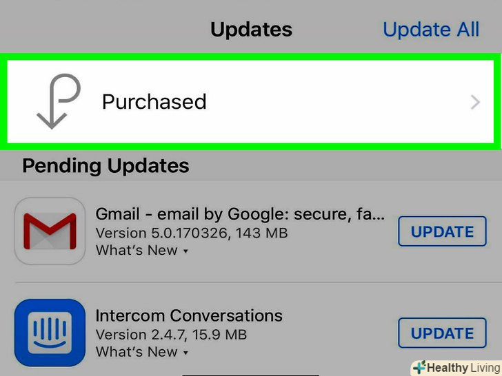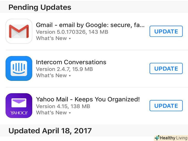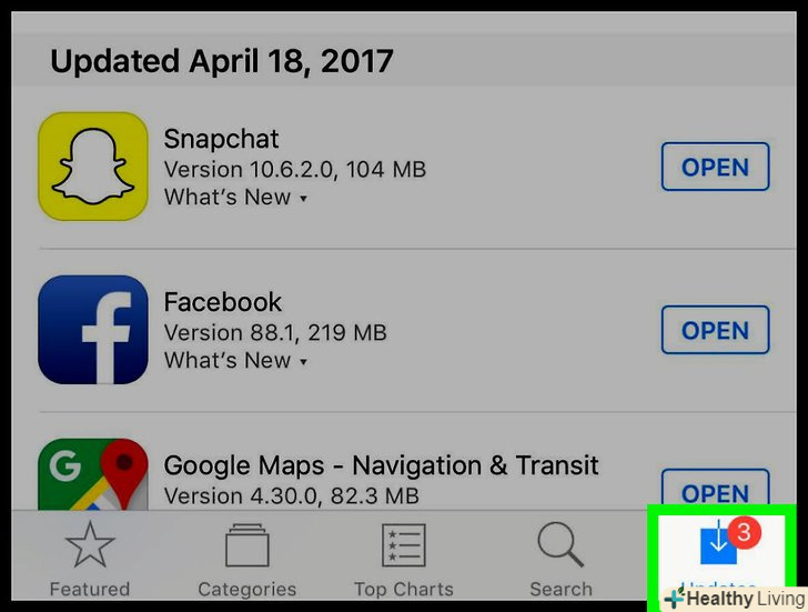 Перегляньте програми, які потребують оновлення.за замовчуванням програми оновлюються автоматично; щоб оновити програми вручну, перейдіть на вкладку "Оновлення".- Якщо праворуч від програми є кнопка "Відкрити", додаток оновлювати не потрібно.