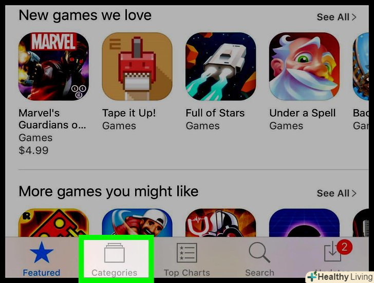 Запустіть програму App Store. натисніть на синій значок з білою літерою "а", складеної з письмового приладдя. За замовчуванням цей значок знаходиться на головному екрані.