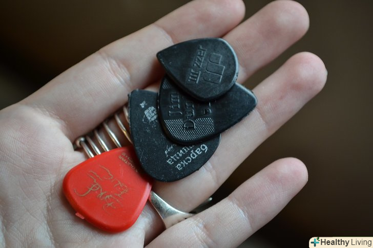 Випробуйте медіатори різної товщини, поки не знайдете відповідний для вас калібр.- Товщину медіаторів вимірюють в міліметрах, медіатори бувають від 0,38 мм (тонкі) до 1,5 мм (товсті). Однак зустрічаються медіатори навіть товщиною в 3,0 мм!