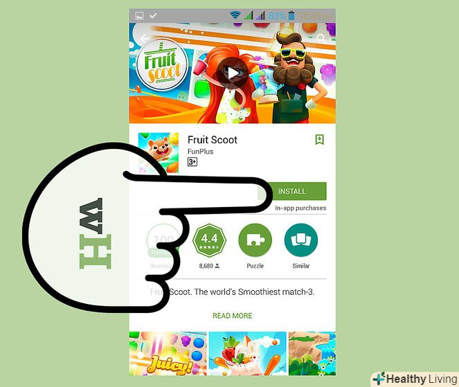 Натисніть на "купити» або "встановити" у верхній частині екрана, щоб завантажити гру на смартфон Android.після цього Android-пристрій приступить до скачування гри.- Щоб скачати гру на телефон на базі Android через комп'ютер, перейдіть на сторінку магазину Google Play (посилання на неї можна знайти на сайті «TC Geeks», зазначеного в розділі «Джерела та посилання» в кінці статті). Переглядайте і купуйте ігри, відправляючи їх завантажуватися на смартфон Android.