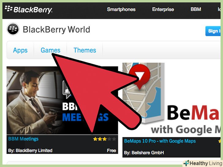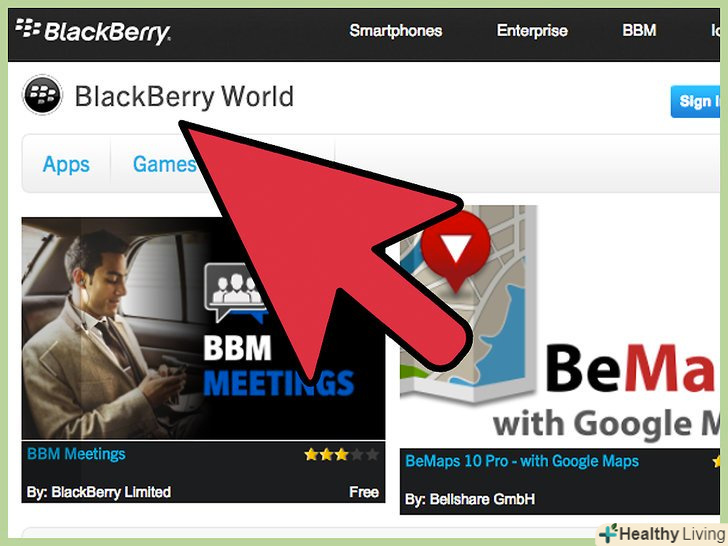 Запустіть Blackberry World на своєму комп'ютері або смартфоні від компанії Blackberry.- Доступ до BlackBerry World можна отримати, відвідавши сайт "Blackberry«, вказаний в розділі» Джерела та посилання" в кінці статті. Після цього вам на вибір будуть доступні дві опції: Завантажити Blackberry World на свій телефон або відвідати сайт App World з комп'ютера.