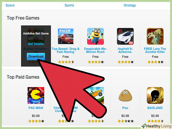 Пошук ігор і додатків для завантаження, а також сама процедура завантаження відрізняються в залежності від виробника і моделі смартфона. Власники iPhone від компанії Apple можуть завантажувати ігри з App Store, тоді як для смартфонів на базі Android доступний Магазин Google Play. Щоб скачати ігри на смартфон від Microsoft, скористайтеся Магазином Windows. На смартфони Blackberry гри можна завантажувати або прямо з Blackberry App World, або з інших сайтів з іграми для Blackberry. Читайте далі, щоб дізнатися про те, як завантажувати ігри на свою модель смартфона.