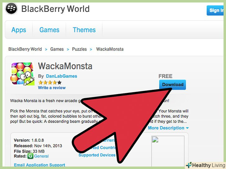 Натисніть на посилання для завантаження гри, яка знаходиться в електронному листі від Blackberry World.гра буде завантажена і встановлена на смартфон Blackberry.- Щоб переглянути інші сайти з іграми для Blackberry, відвідайте сайт "Freenuts«, вказаний в розділі» Джерела та посилання" в кінці статті. Процедура покупки і скачування ігор нічим не відрізняється від скачування гри з Blackberry World.