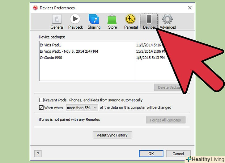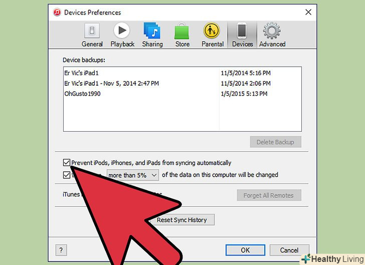 Встановіть прапорець біля опції " заборонити автоматичну синхронізацію пристроїв iPod, iPhone і iPad».
