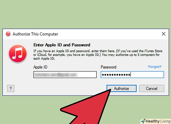 Клацніть по "авторизувати".тепер комп'ютер готовий до синхронізації покупок iTunes з iPhone.- Якщо ви купували медіаконтент в iTunes Store за допомогою декількох ідентифікаторів Apple ID, повторіть процес авторизації c кожним ідентифікатором Apple ID, яким ви користувалися.